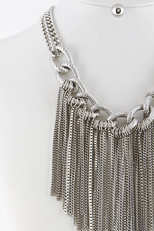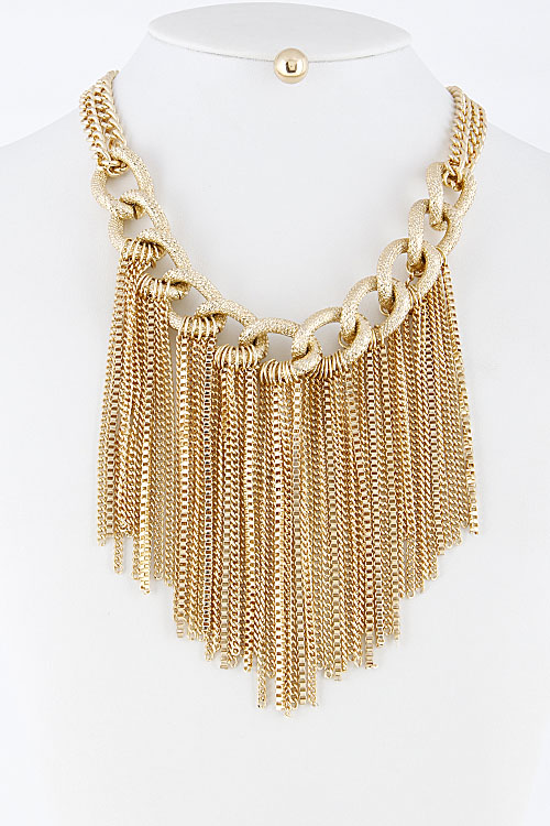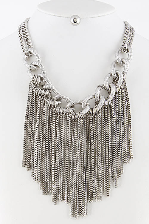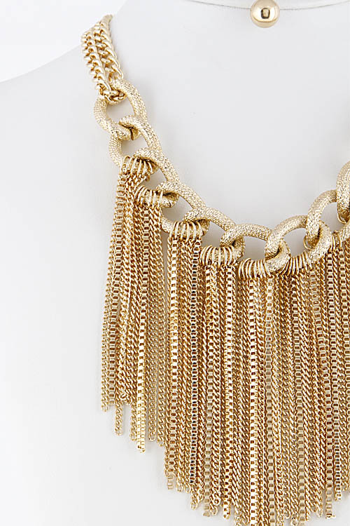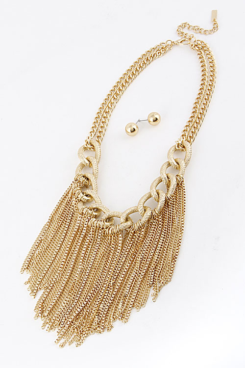 - * Thick Chain Necklace With Fringes Set 6CAE6 * 18 X 4" approx.