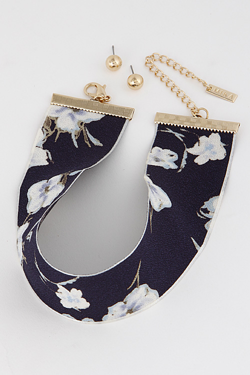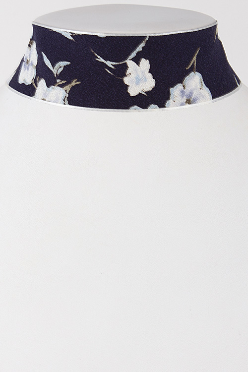 • * Asian Style Flower Printed Choker Necklace 6LBE7 * 1.5 x 12" approx.