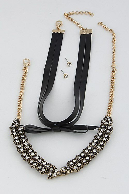 • * Formal Solid Choker With Rhinestones Set 6HAD5 * 0.5 x 12" approx.
