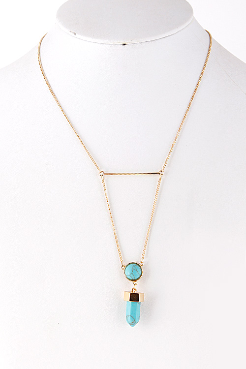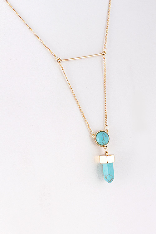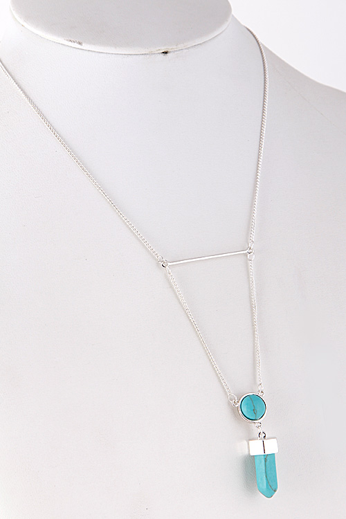 • * Bar Centered Stone Dangle Pendant Necklace 5DBD2 * 14 x 3.5" approx.