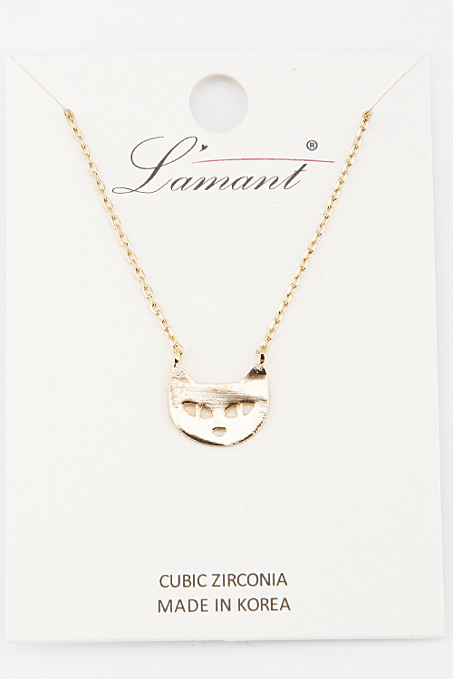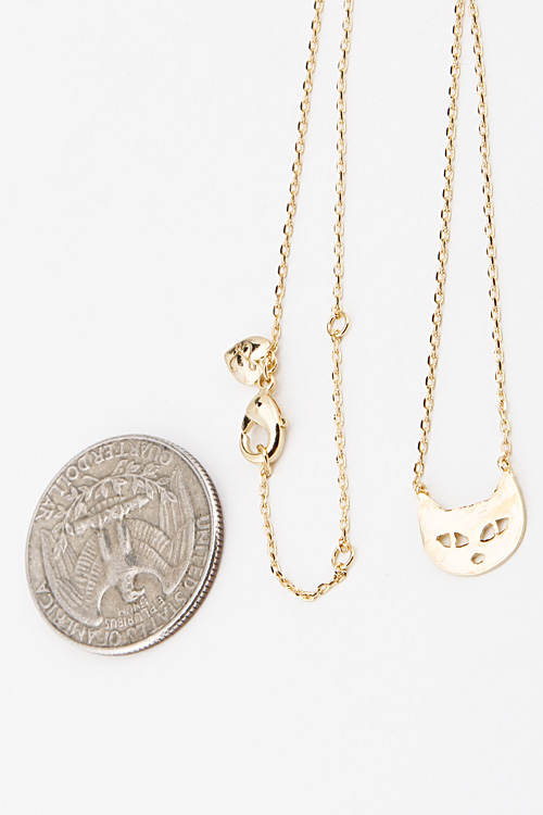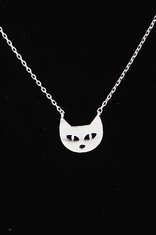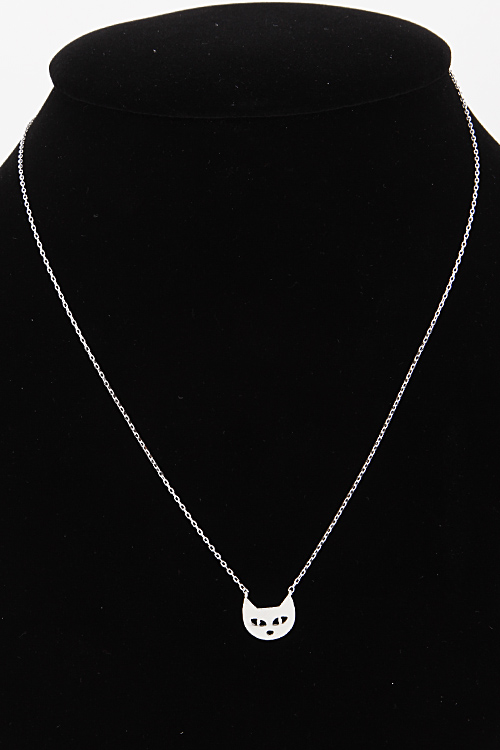 - * Tiny Cat Head Necklace 6BAC10 * 16" approx