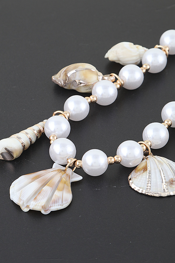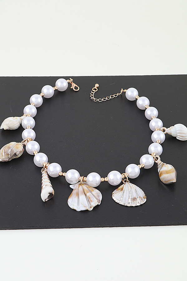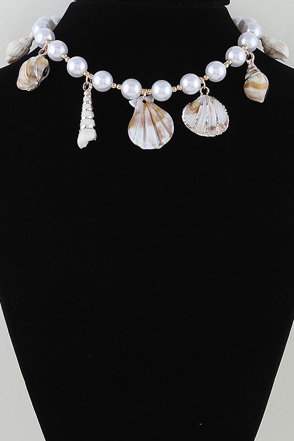 - * Multi Seashell Charm Beaded Choker Necklace