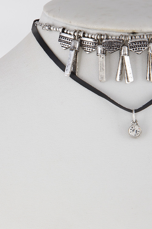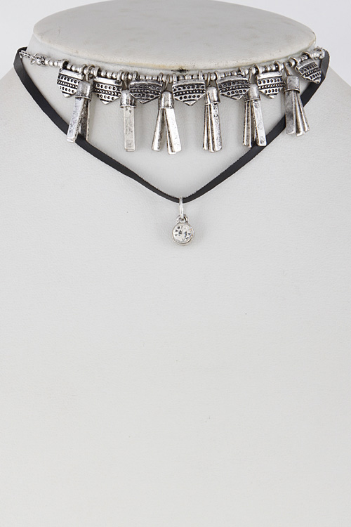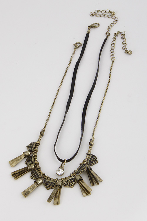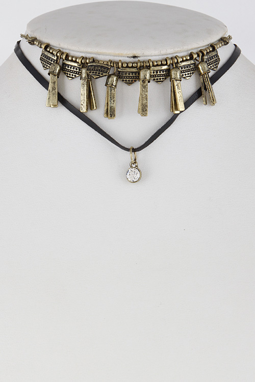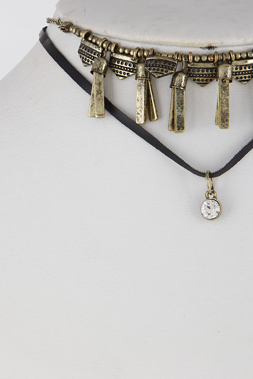 • * Double Antique Rhinestone Choker Set 6FCC9 * 13" approx.