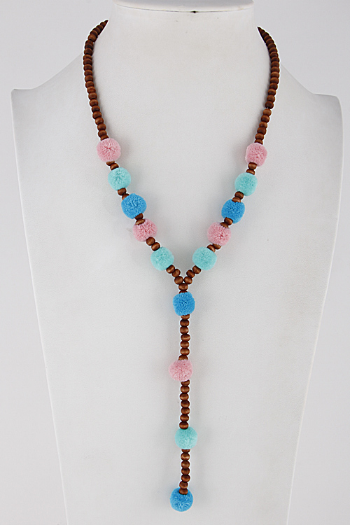 - * Pom Pom Long Necklace 7EDA10 * 24" approx.