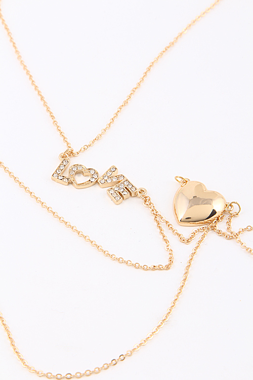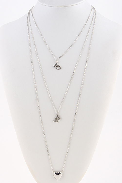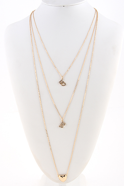 • * Love Heart Three Layer Pendant Necklace 5AAH3 * 26" approx.