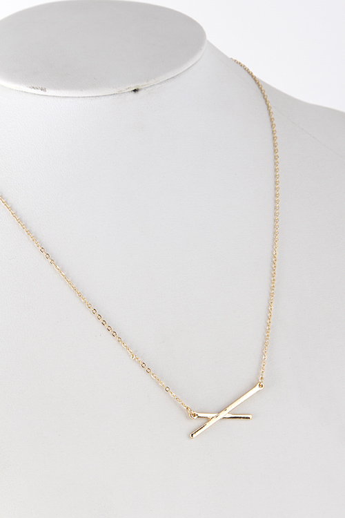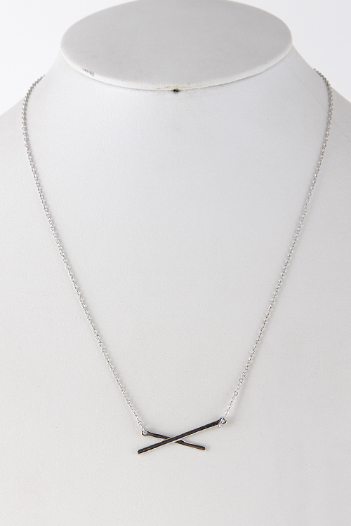 - * Double Bar Crossed Pendant Necklace 5DCE3 * 16" approx.