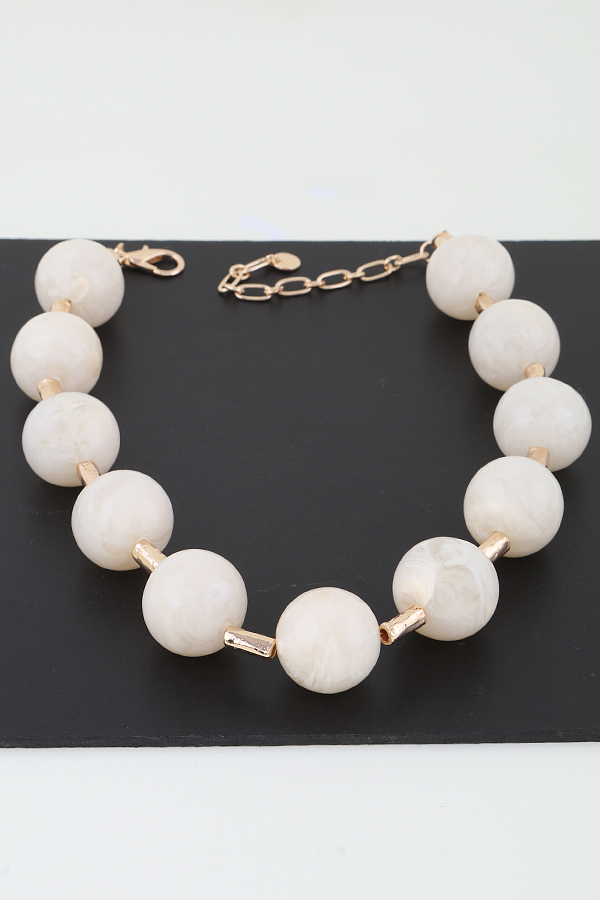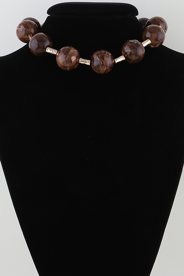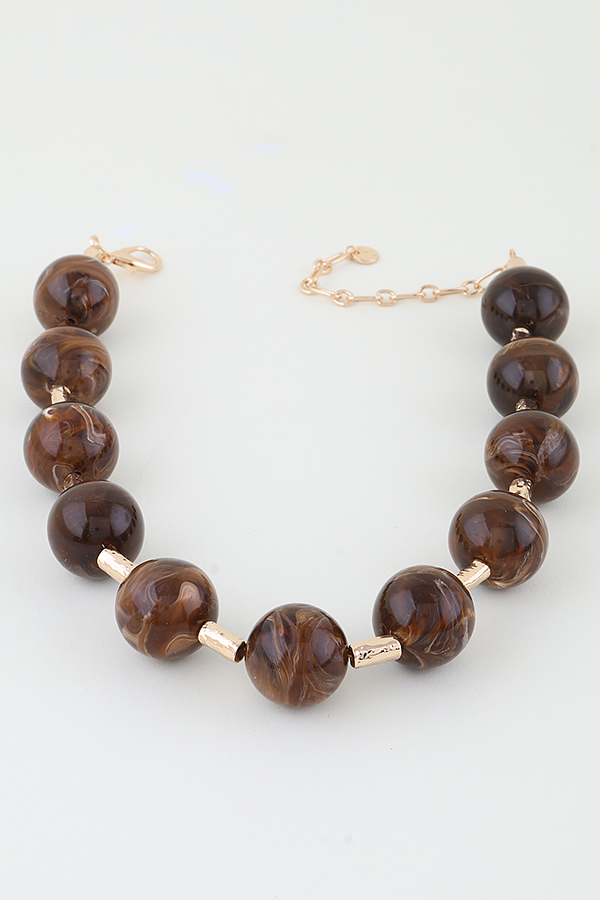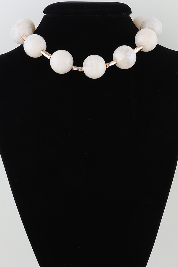- * This is a Marble Stone Beaded Statement Choker Necklace from H&D Accessories. It features large, marbled stone beads interspersed with metallic accents, creating a bold and textured design. It's perfect for making a striking fashion statement, whether you're attending an art gallery opening, a trendy brunch with friends, or looking to add a touch of artistic flair to your evening ensemble, allowing you to showcase a unique and sophisticated style.