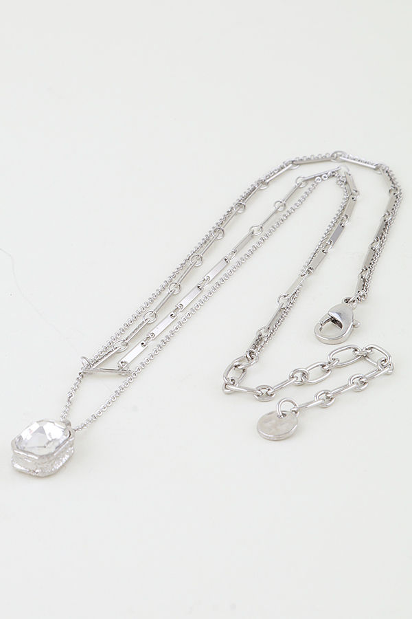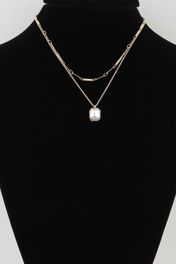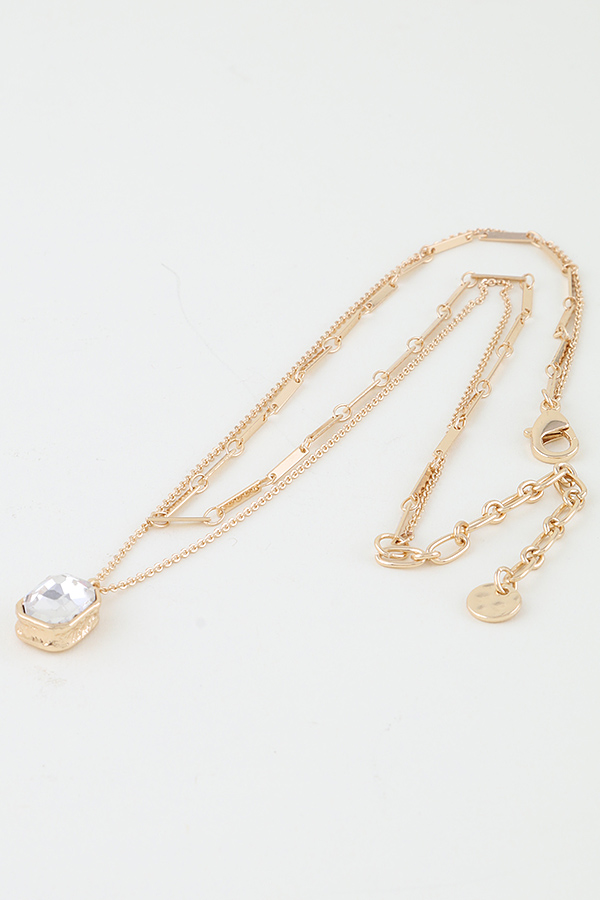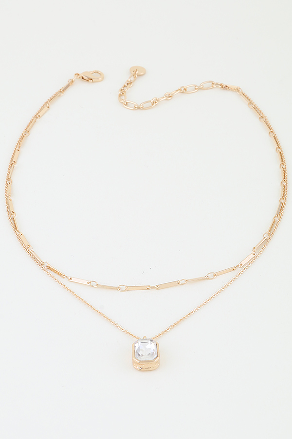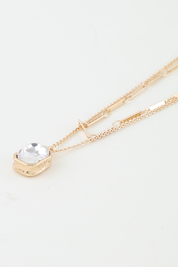 • * This is a Cubic Rhinestone Bar Chain Necklace. It has a double - layer chain design, with one layer being a bar - shaped chain and the other layer featuring a pendant adorned with a cubic rhinestone. From H&D Accessories, it presents an elegant and fashionable layered look, combining different chain styles and a sparkling cubic rhinestone element.