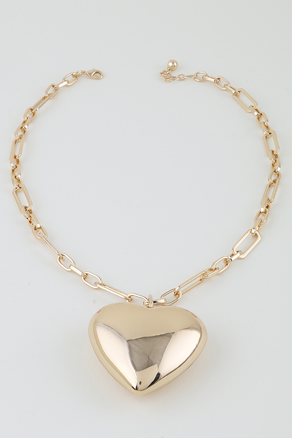 - * Oversized Heart Pendant Chain Necklace