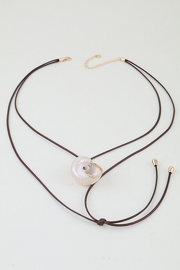 - * This Summer Conch Shell Wrap Necklace from H&D Accessories features an adjustable wrap-style cord with sliding knots for a customizable fit, centered with a natural, polished conch shell pendant that has a smooth, iridescent finish and a sleek edge detail, creating a lightweight, bohemian coastal-inspired design perfect for elevating summer outfits, beachwear, vacation looks, or casual everyday styling.