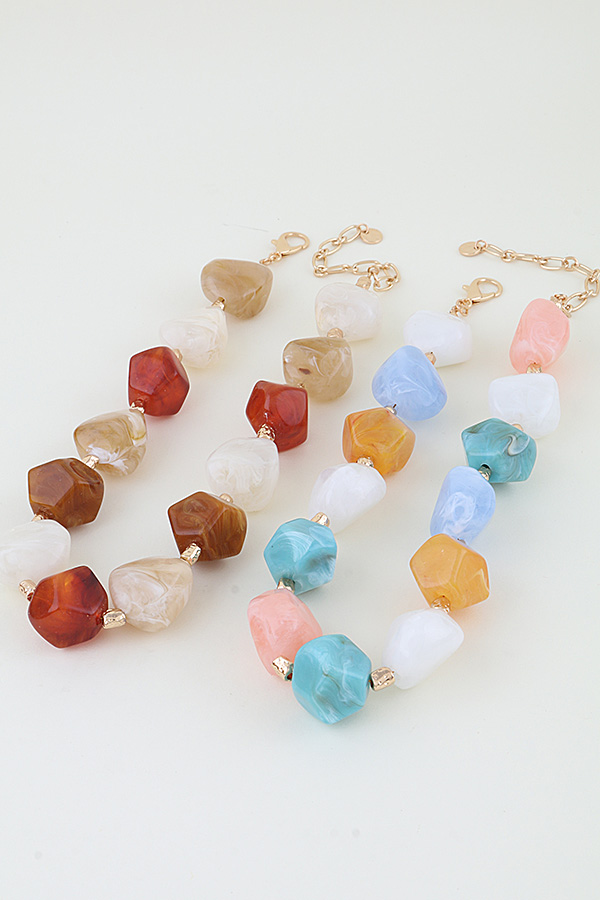 - * Multi Marble Stone Beaded Necklace