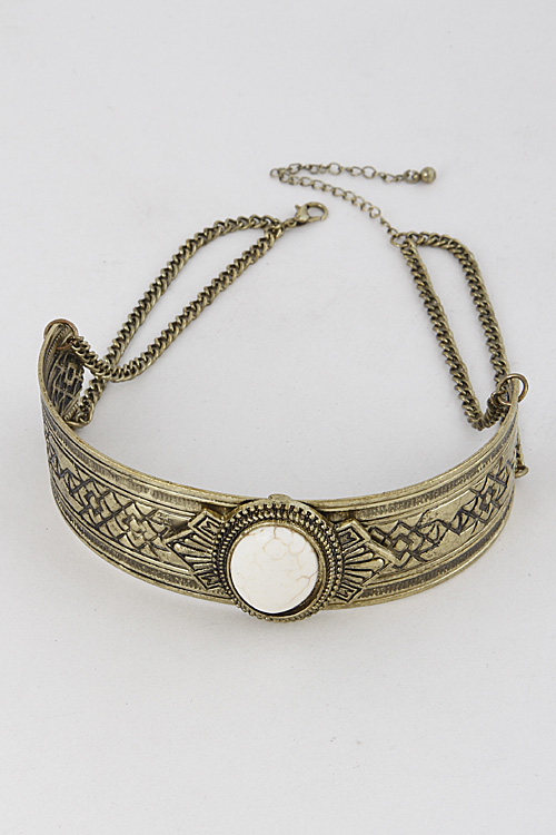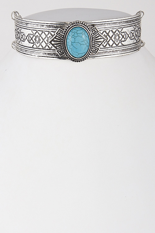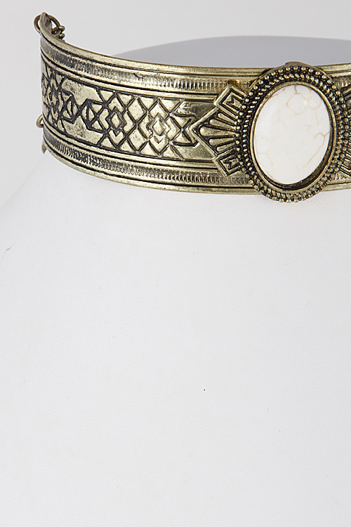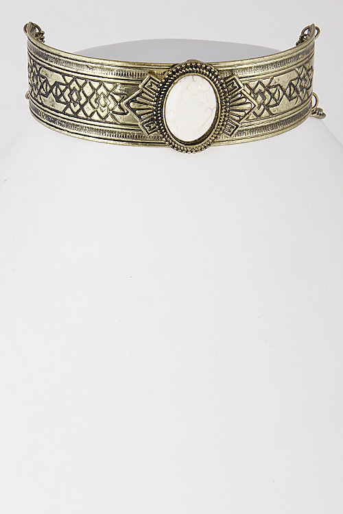 - * Antique Inspired Oval Stone Choker Necklace 6IBA6 * 1.2 x 10" approx.