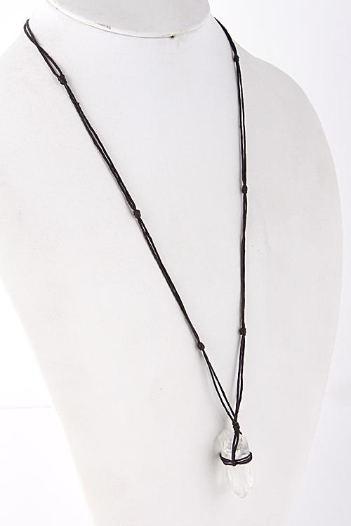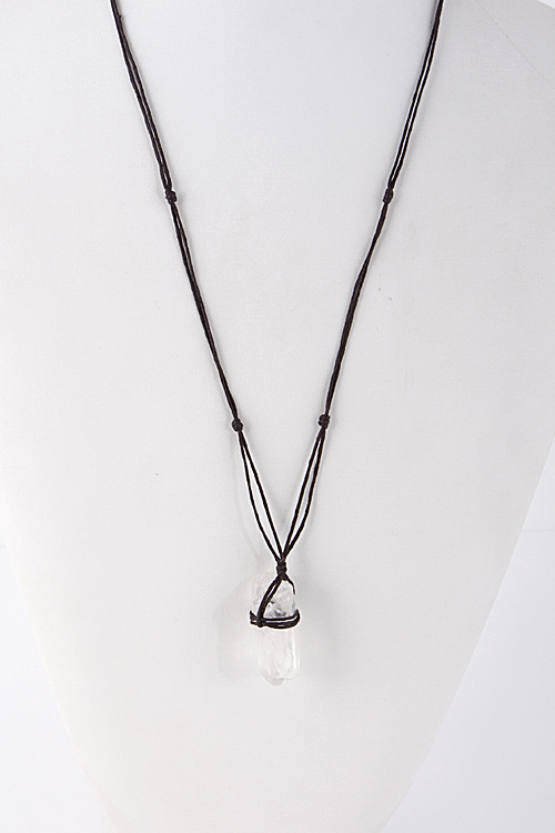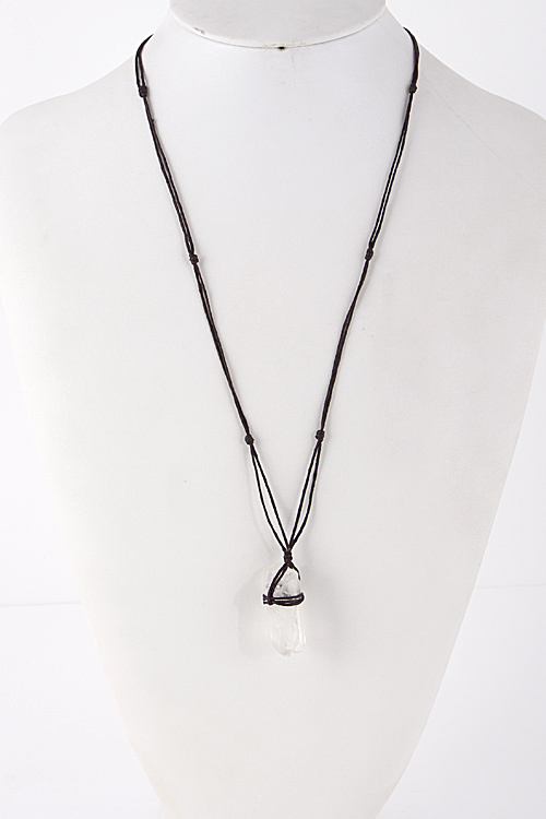 • * Long Black Yarn Clear Stone Pendant Necklace 5ECA4 * 36" approx.