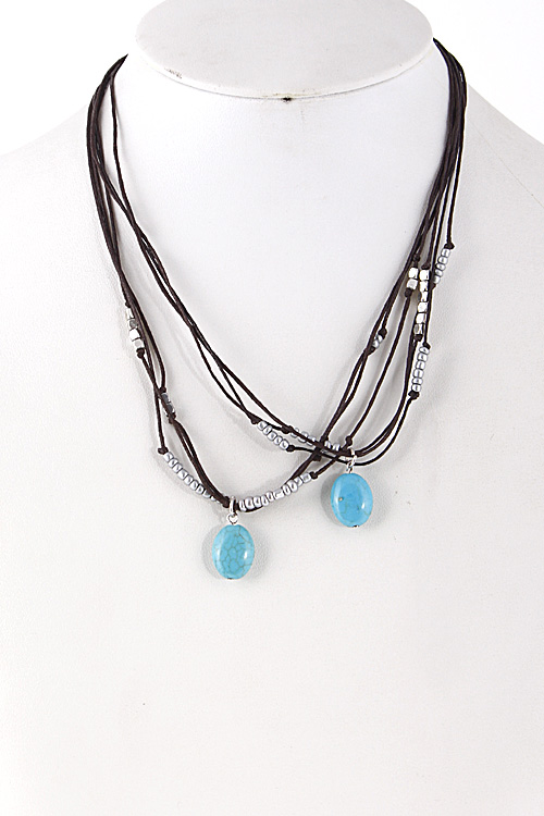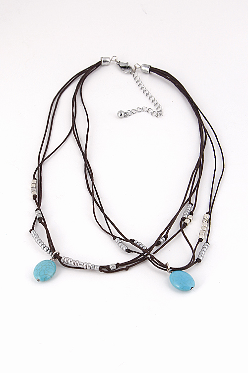 - * Double Stranded Bead Dangle Layer Necklace 5ECA4 * 18" approx.