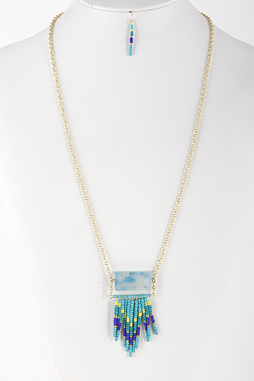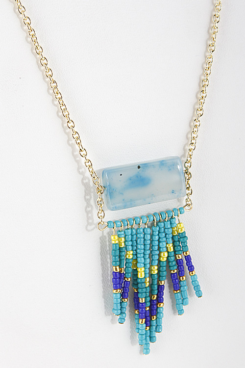 • * Square Stone Cutout Bead Dangle Necklace 5ACD8 * 24" approx.