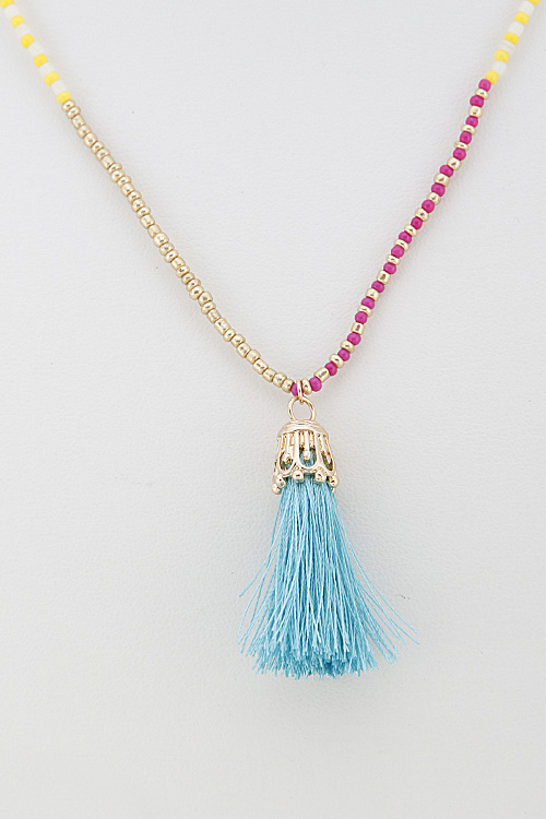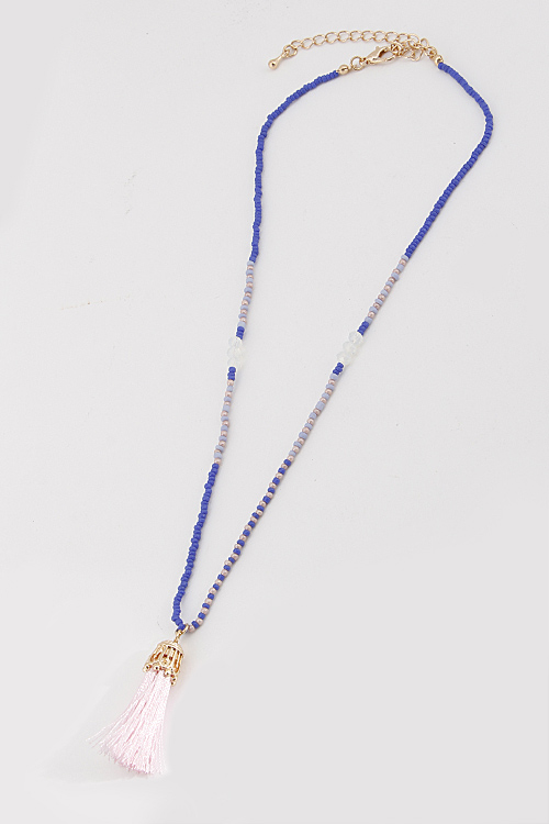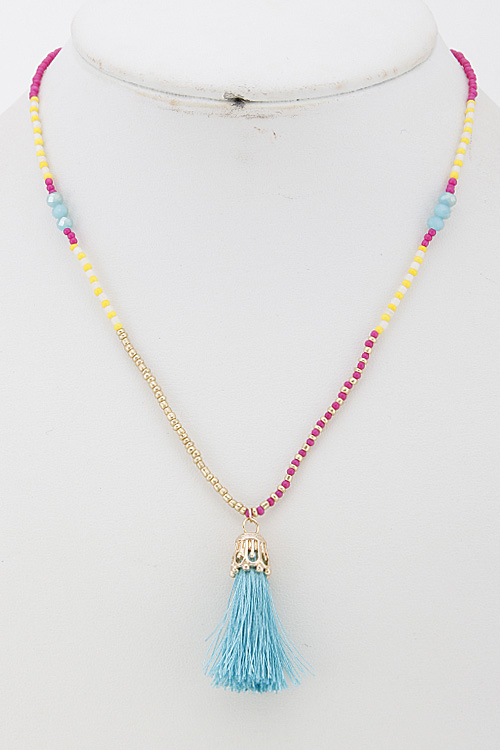 - * Mixed Bead Tassel Necklace 6ACB8 * 18" approx.