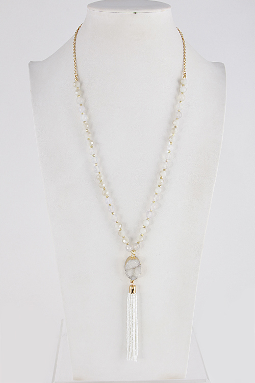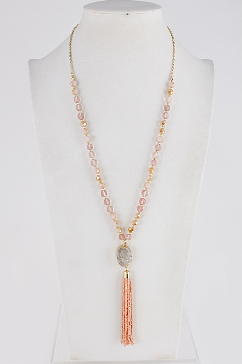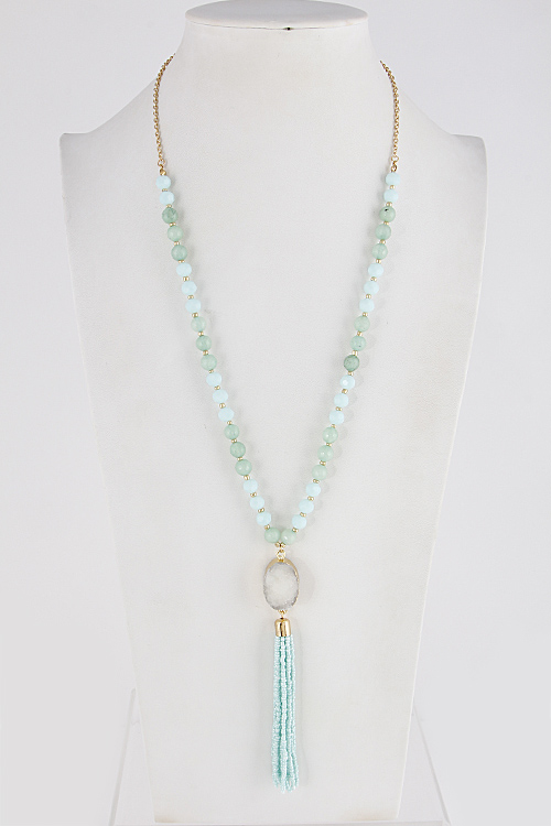 - * Stone Charm Long Necklace 7EBH9 * 34" approx.