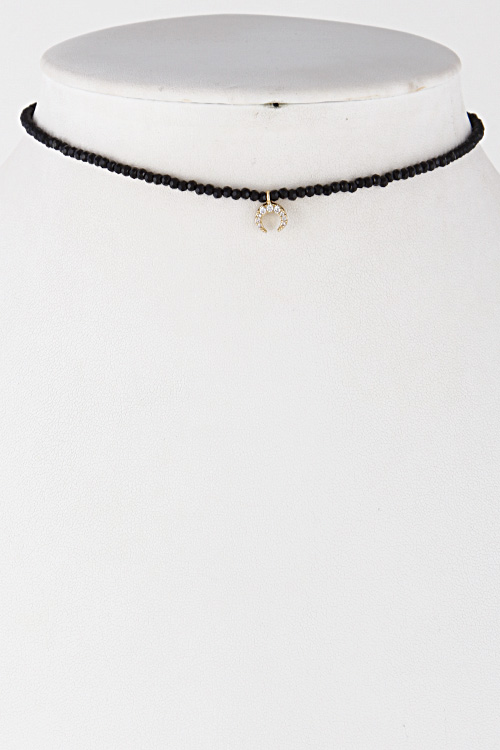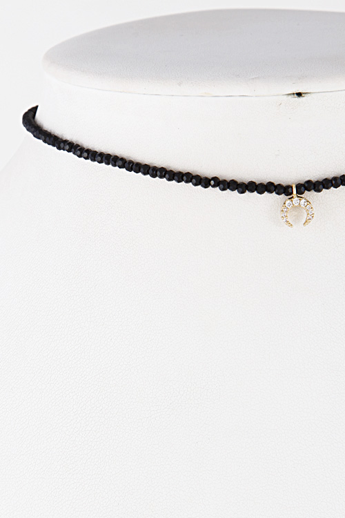 • * Shiny Beaded Pearl Necklace with Crescent Pendant 7ACC8 * 12" Approx. * Cubic Zirconia