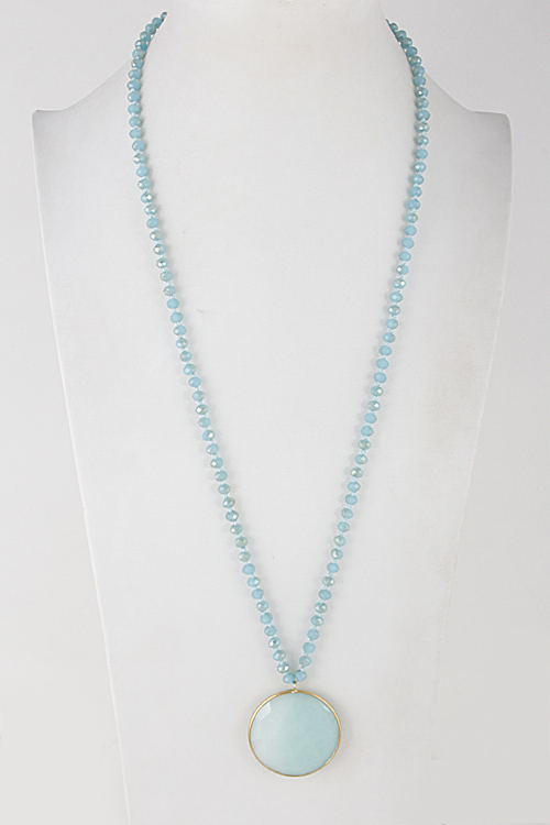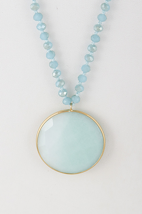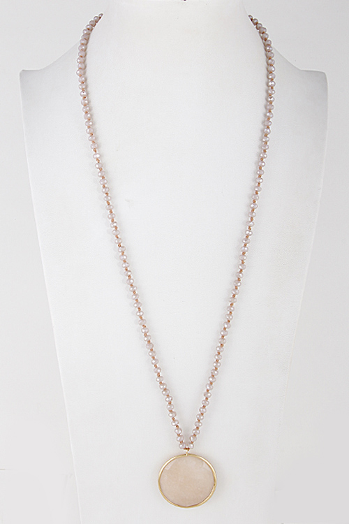 - * Circle Natural Stone Long Necklace 7DCA6 * 32" approx.