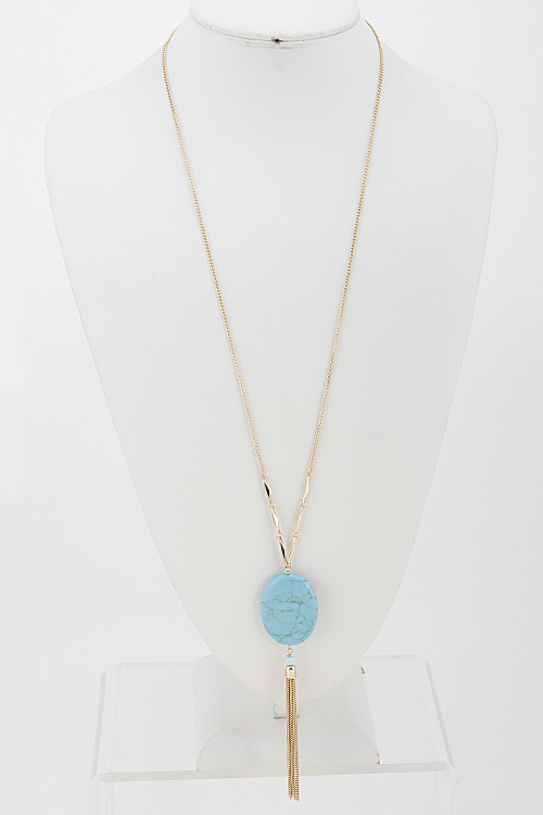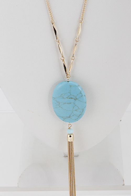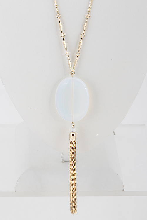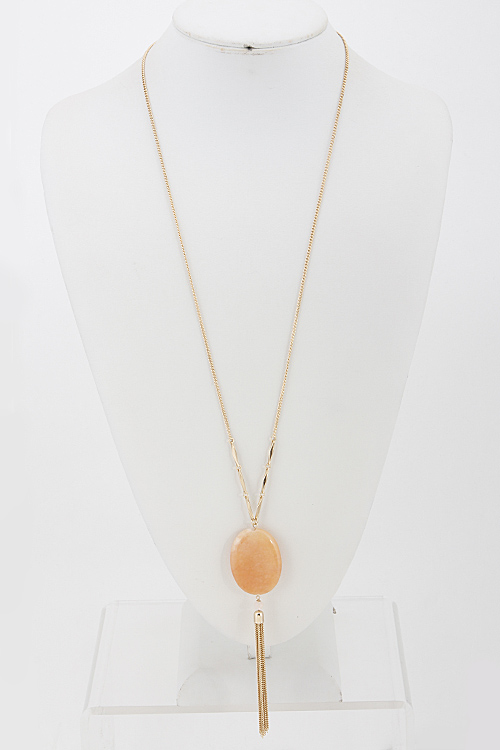 - *Oval Stone Long Necklace 6ACA5 * 28" approx.