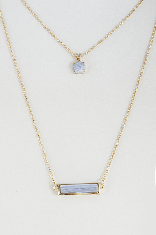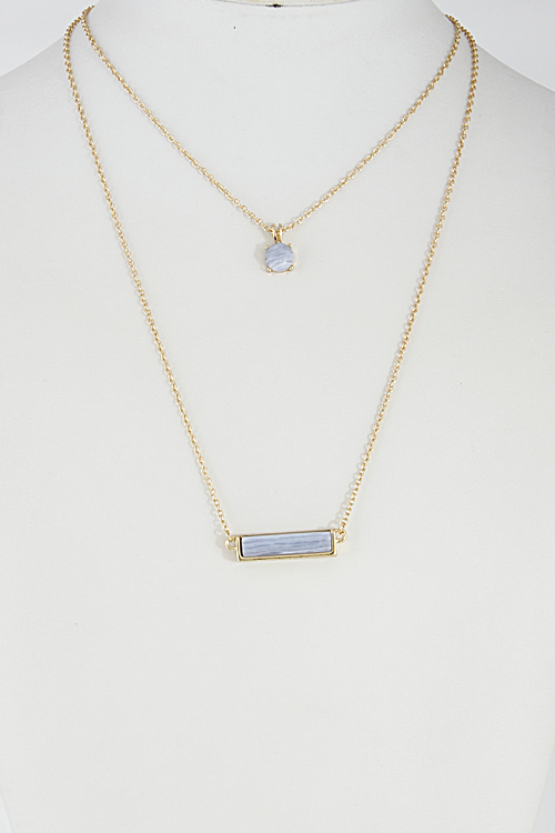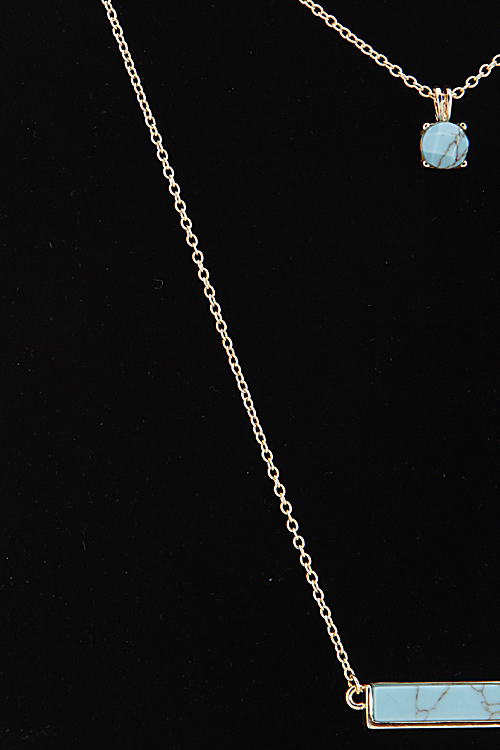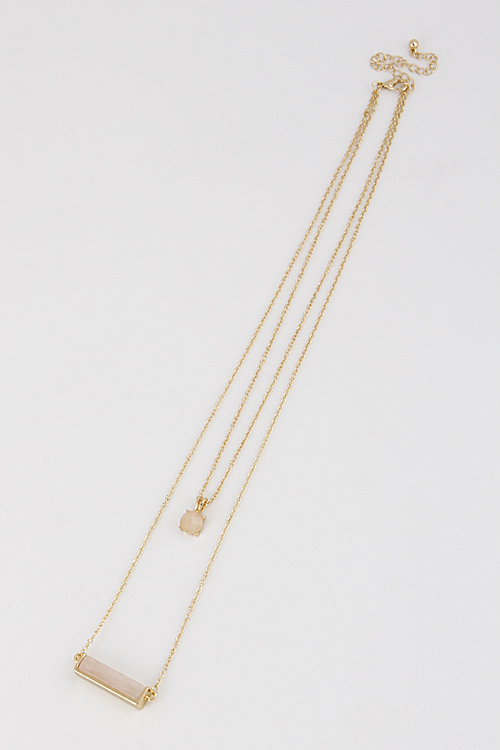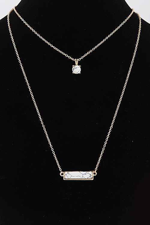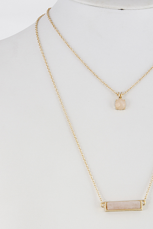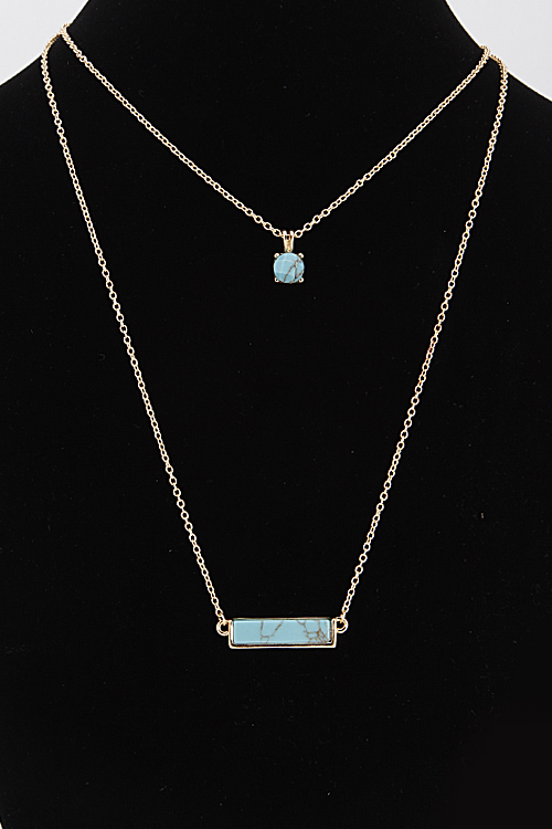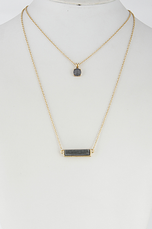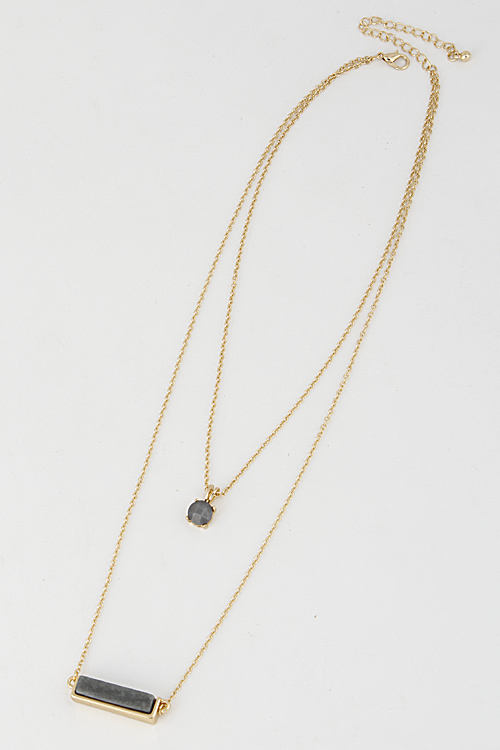 • * Double Layered Necklace With Bar And Circle Stone Set 6DCF2 * 14" approx.