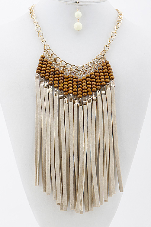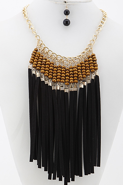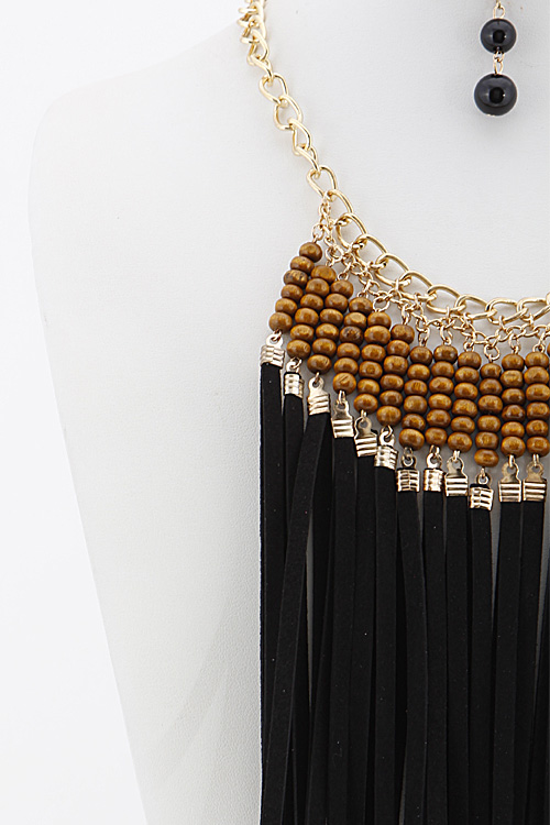 • *Tassel Chain Necklace with Black Beaded Choker 6BAE3 *16 X 8" approx.