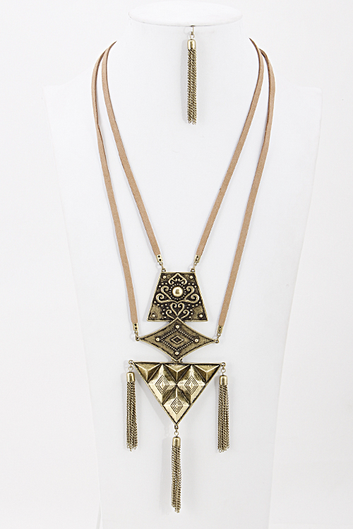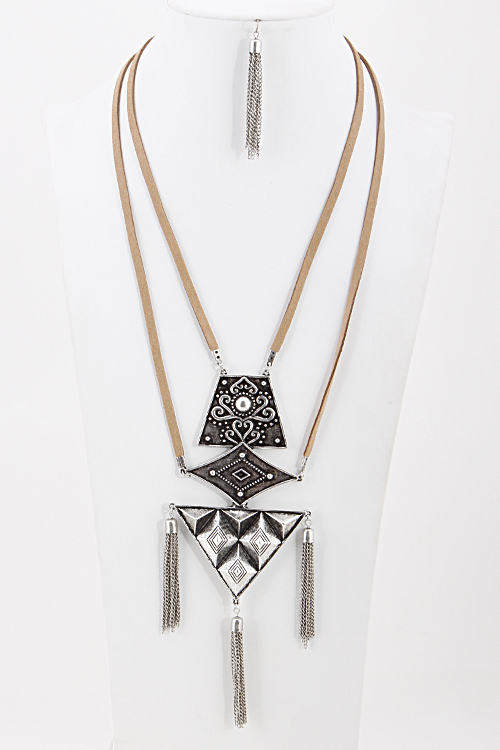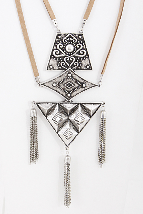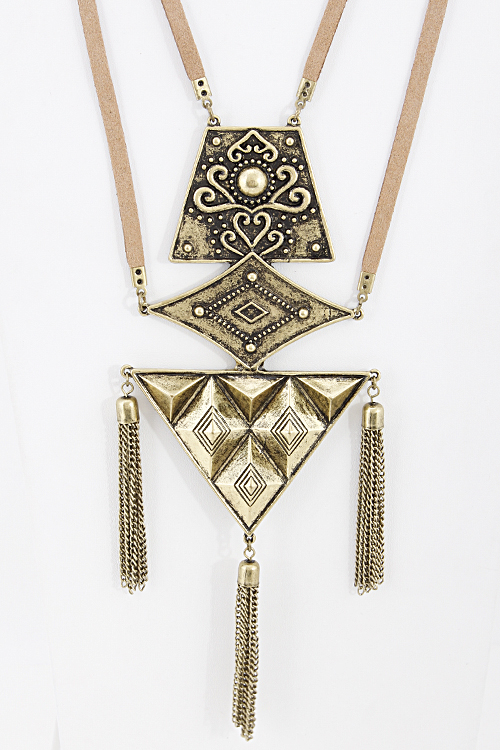 - * Flat Metal gold and silver Patton Necklace 5HCH6 * 16 x 8" approx.