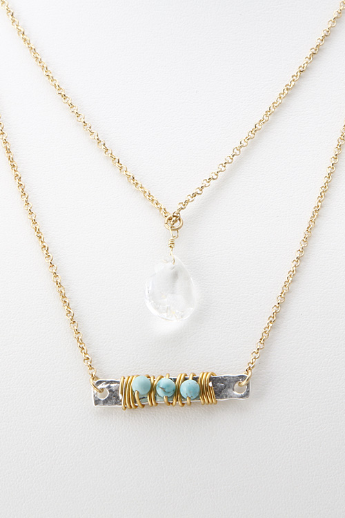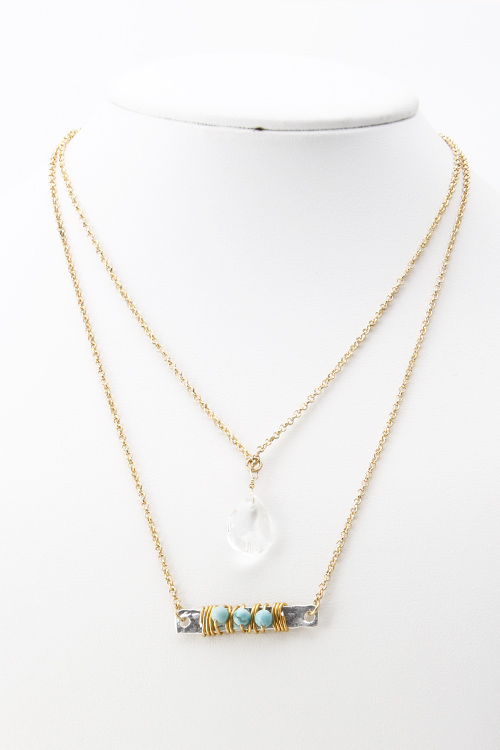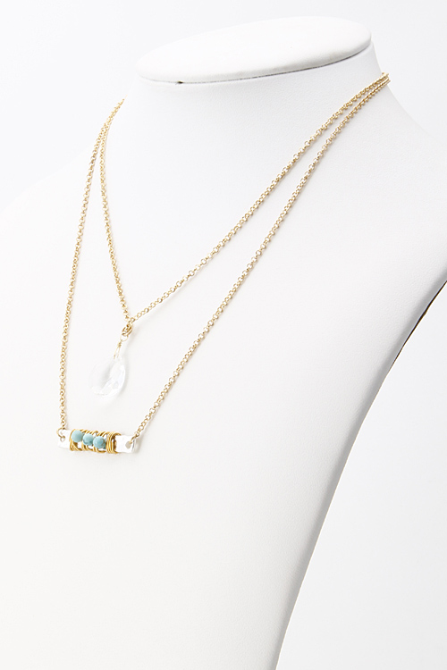 • * Stone Bead Wired Bar Double Pendant Necklace 5FCJ3 * 20 x 3" approx.