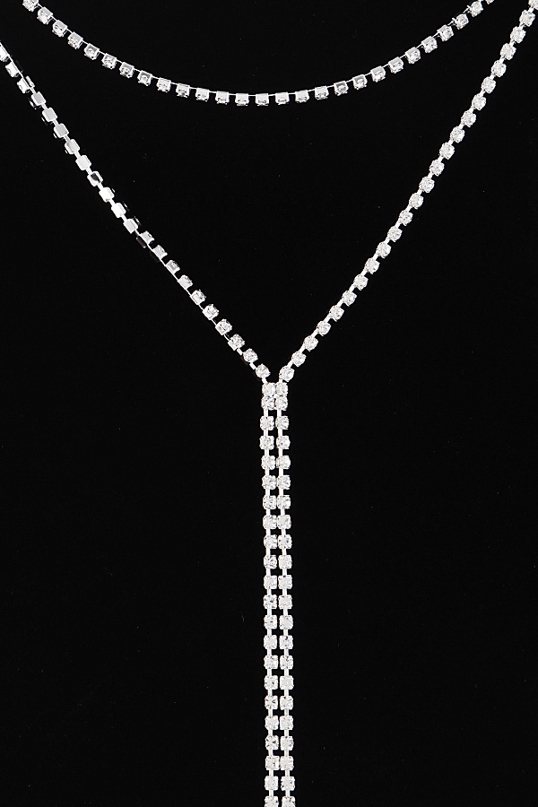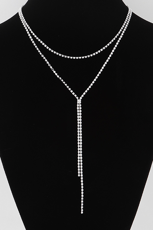 • * Double Rhinestone Drop Necklace