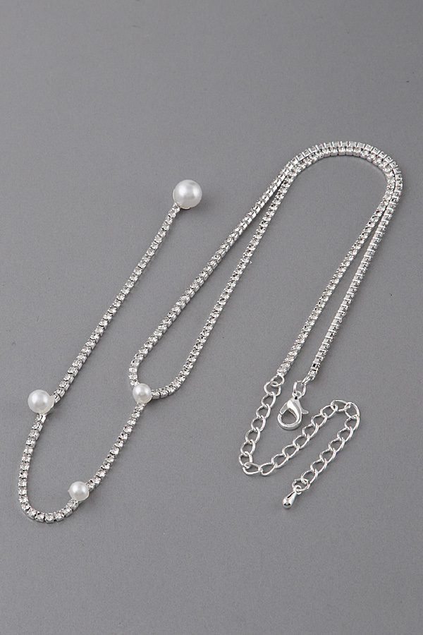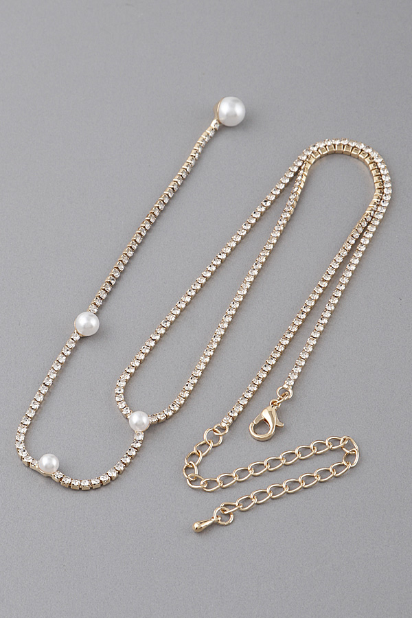 - * Rhinestone Pearl Drop Necklace
