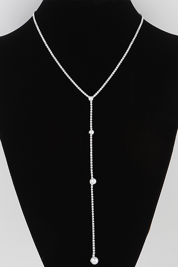 - * Rhinestone Pearl Drop Necklace
