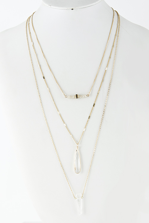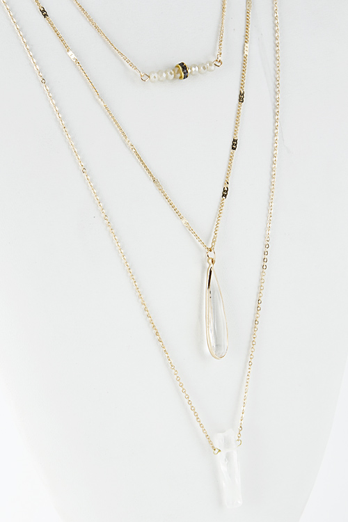 • * Clear Rhinestone Cut Bead Pendant Layer Necklace 5DDA4 * 29" approx.
