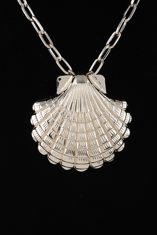 - * Introducing the "Ocean Embrace Necklace" – a stunning statement piece that features a large shell pendant, perfectly set against a sleek black background. This exquisite necklace from H&D Accessories captures the essence of the sea, making it a must-have for any fashion-forward individual.