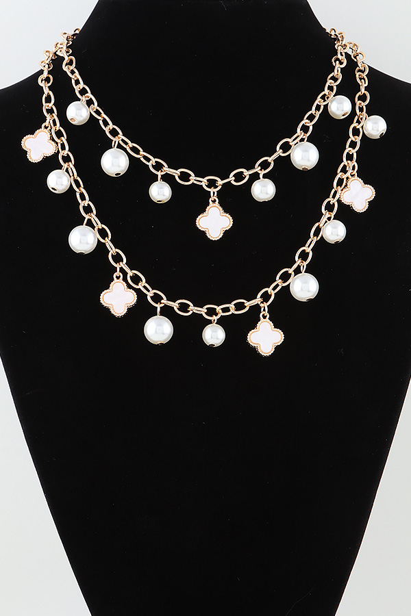 - * Double Pearled Clover Chain Necklace