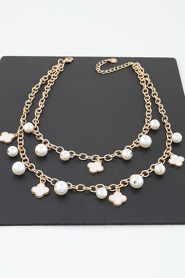 - Introducing the Double Pearled Clover Chain Necklace from H&D Accessories, where elegance meets sophistication. This stunning piece combines lustrous pearls with luxurious gold chains, making it the perfect accessory for any occasion. Elevate your style and make a statement with this exquisite necklace that embodies timeless beauty.