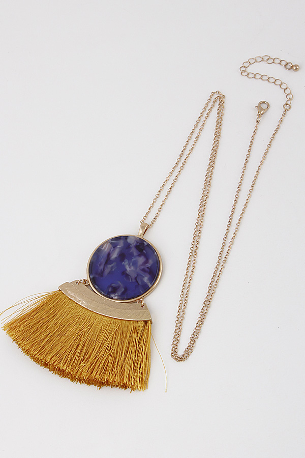 - * Fringe Tassel and Stone Long Necklace 8ICB10