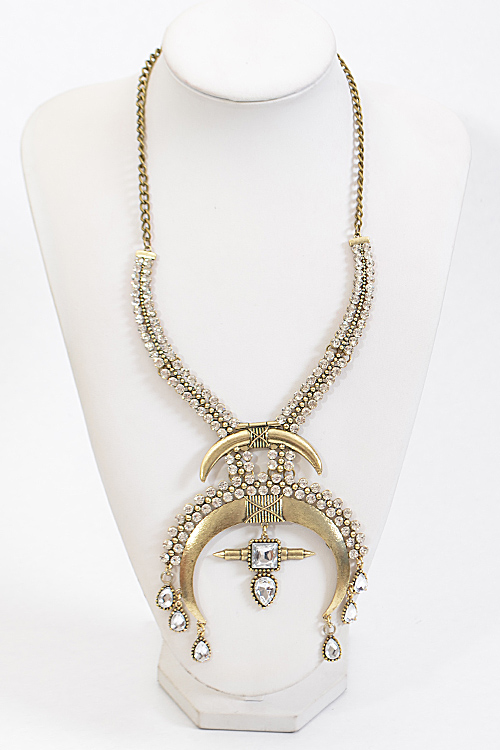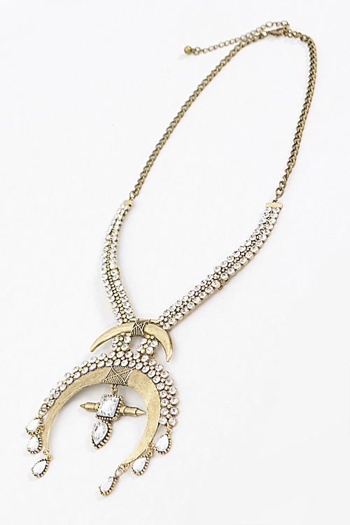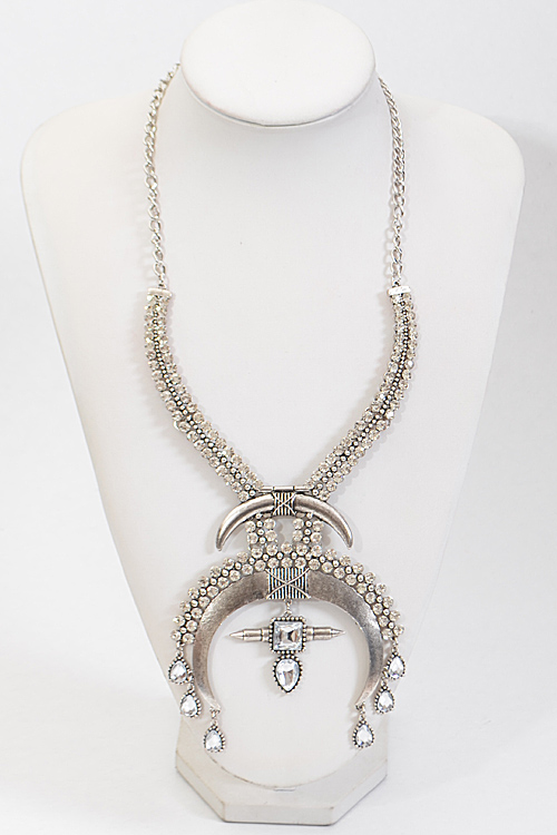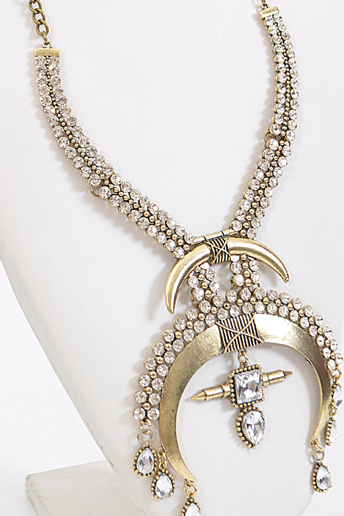 - * Flashy Long Necklace With Rhinestones * 21.75 x 7.5" approx.