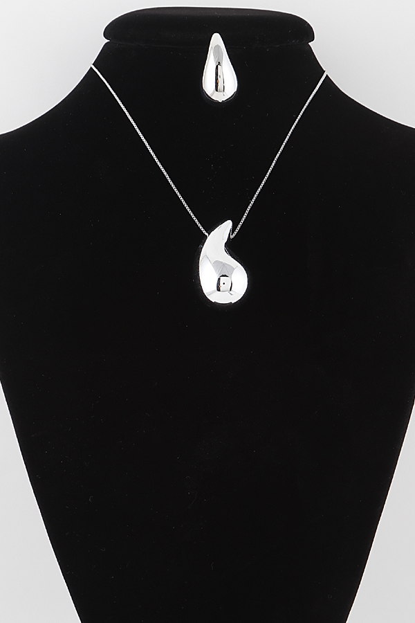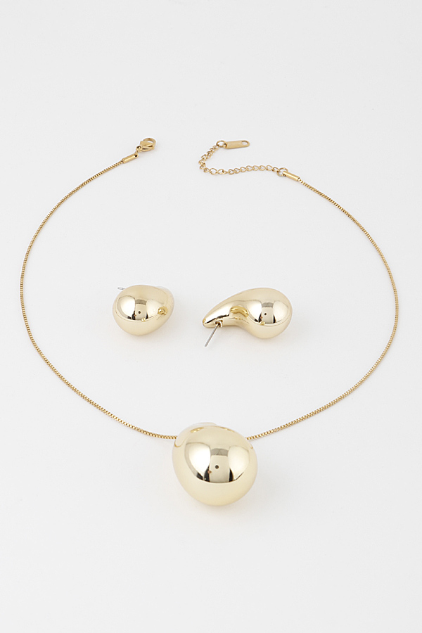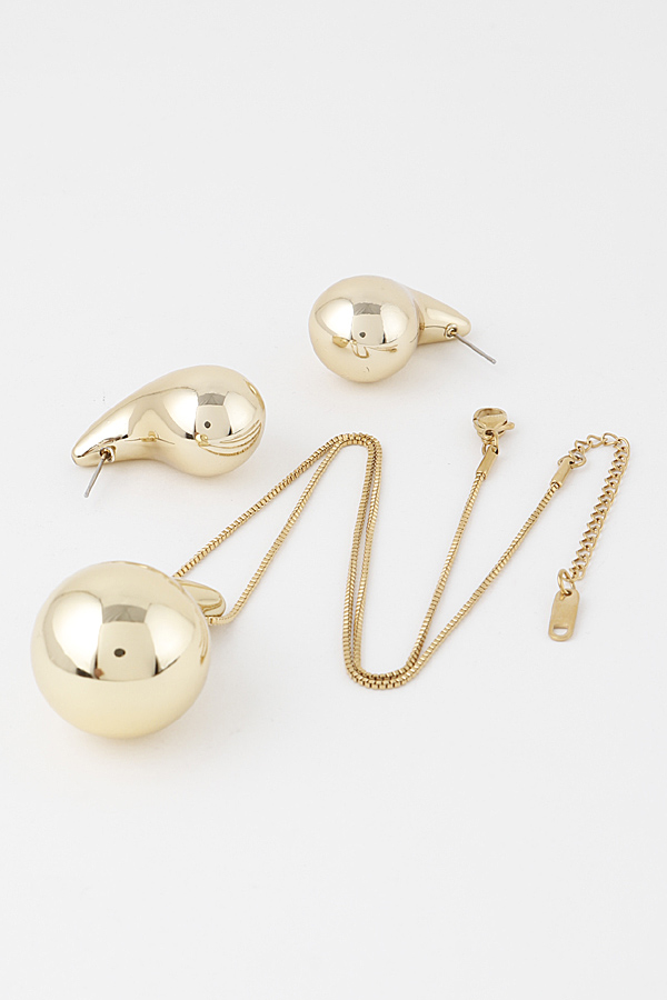 - * Introducing the Shiny Teardrop Necklace Set by H&D Accessories! This exquisite gold necklace and earring set, is the epitome of timeless beauty. With its shimmering teardrop design and impeccable craftsmanship, this set is sure to turn heads and make a statement. The Shiny Teardrop Necklace Set is the perfect accessory for any special occasion or a glamorous night out. Elevate your style and exude confidence with this stunning set.