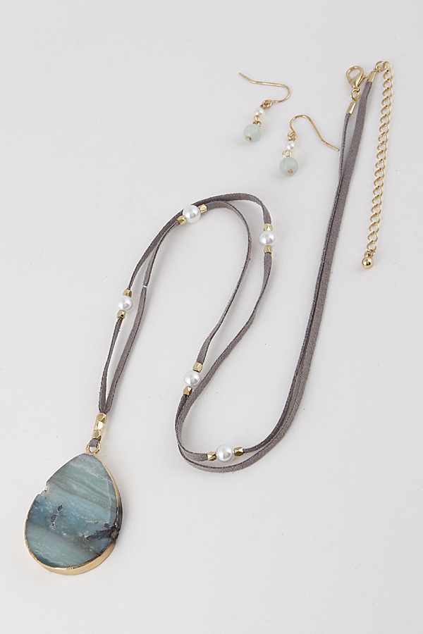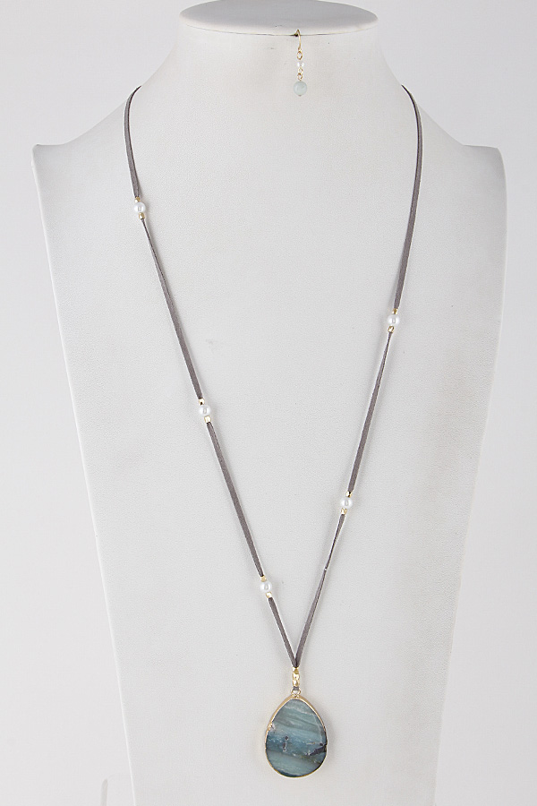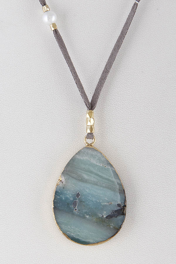 - * Teardrop Opulent Stone Long Necklace 8FAD1