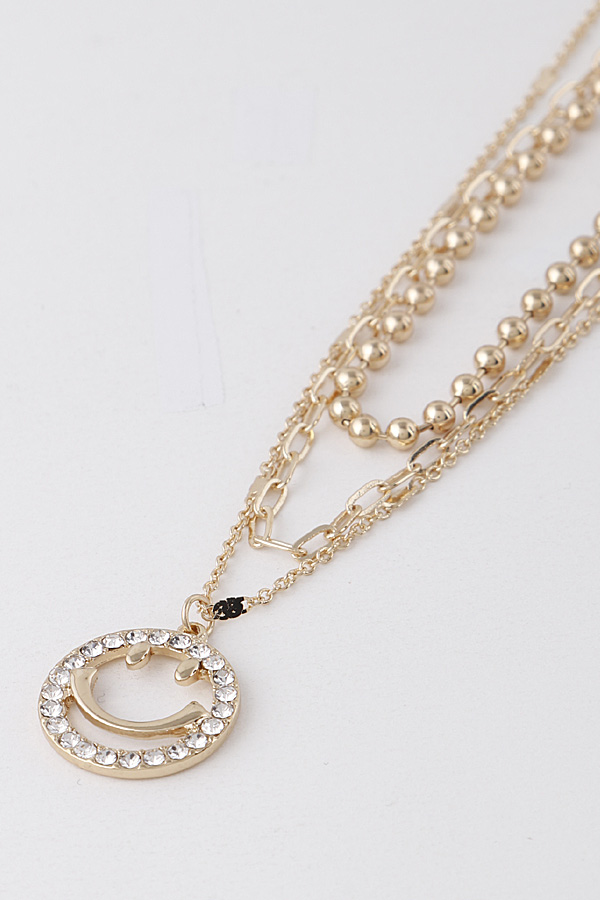 - * Jewel Lined Smiley Face Necklace
