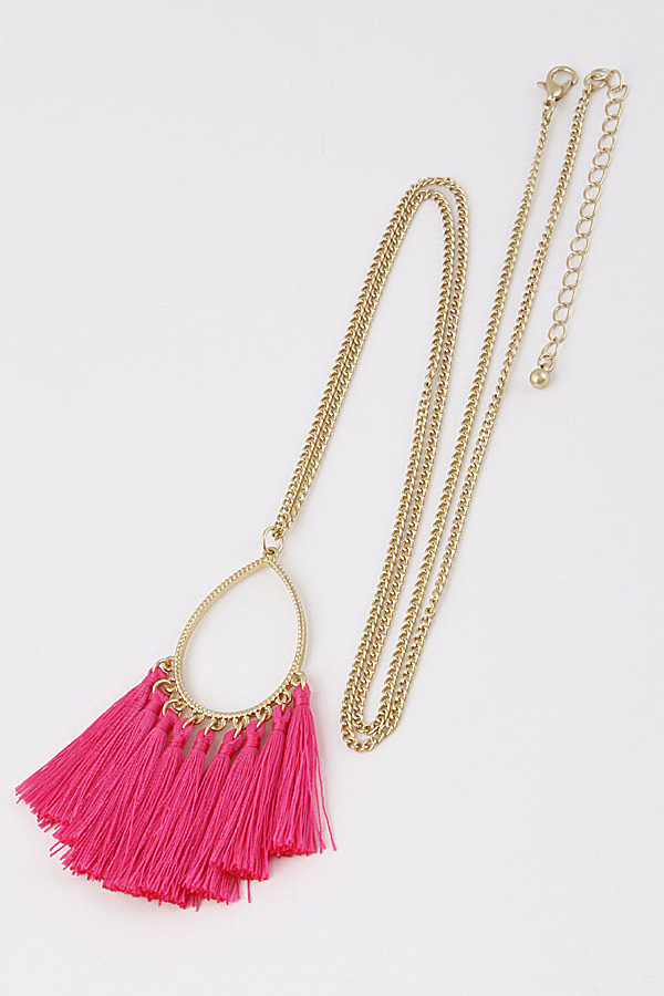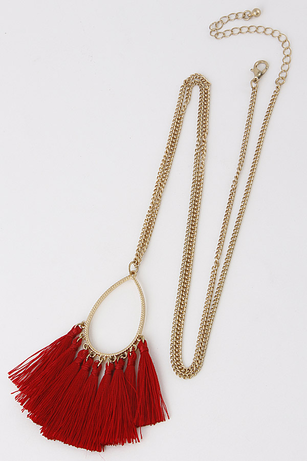 • * Teardrop Long Necklace With Fringe Tassels 9ACD3