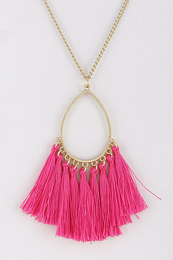 • * Teardrop Long Necklace With Fringe Tassels 9ACD3