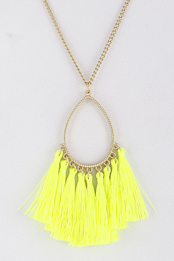 • * Teardrop Long Necklace With Fringe Tassels 9ACD3