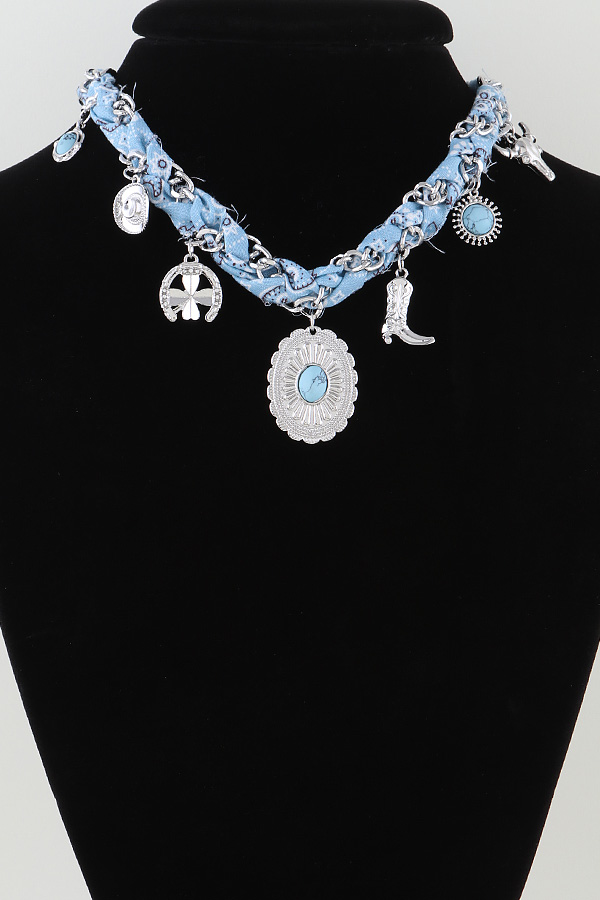 - * Wild West Charm Braided Necklace is a stylish accessory from H&D Accessories. It features a braided design with various charming pendants. The necklace is perfect for adding a touch of Western flair to casual outfits, making it suitable for everyday wear or themed parties.