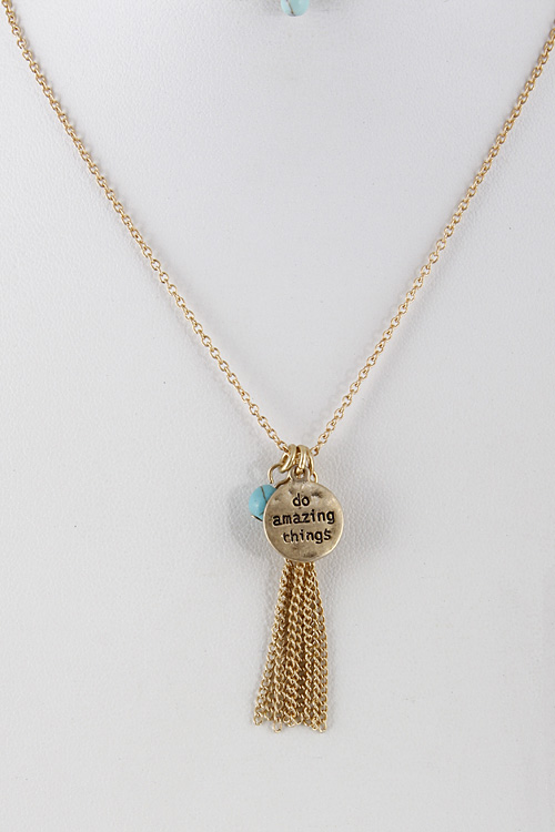 - * Do Amazing Things Charm Tassel Pendant Necklace 5DAH1 * 14" approx.