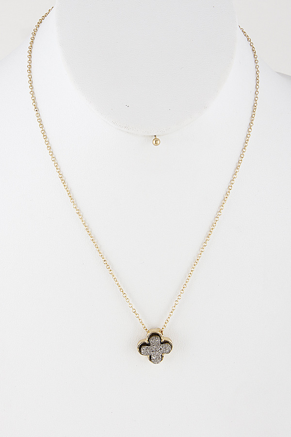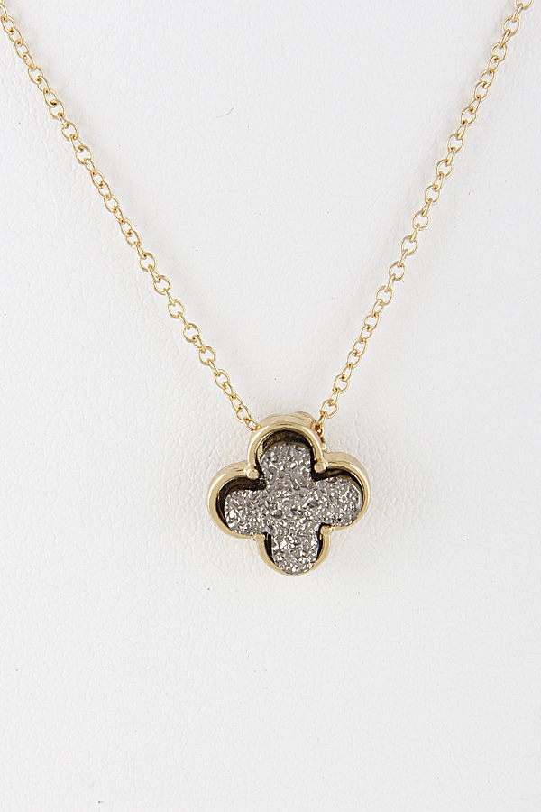 - * Sparkling Druzy Clover Stone Necklace 7LBC1