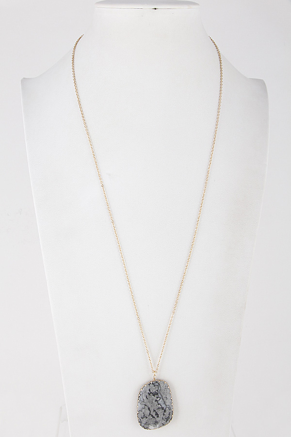 • * Opulent Stone Elegant Long Necklace 8ACD1