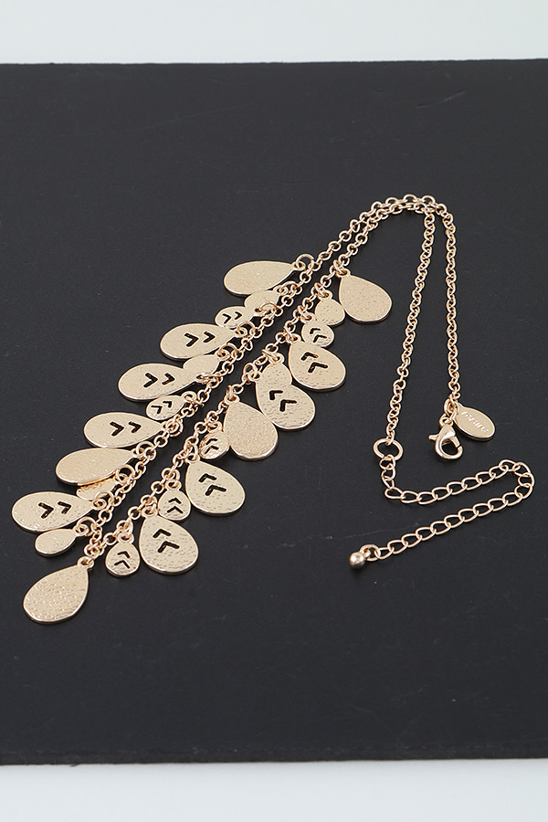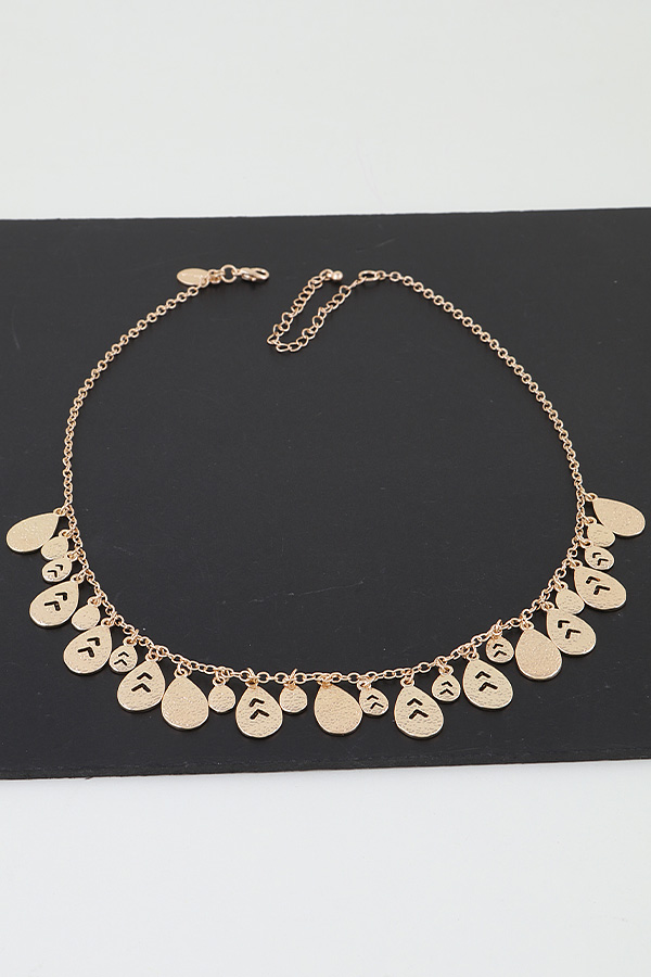 - * The Only Up Teardrop Charm Necklace from H&D Accessories is a chic and stylish piece. It features a delicate chain adorned with multiple teardrop - shaped charms. Each charm has a textured surface with a subtle pattern, creating an elegant and eye - catching design that drapes gracefully around the neck.