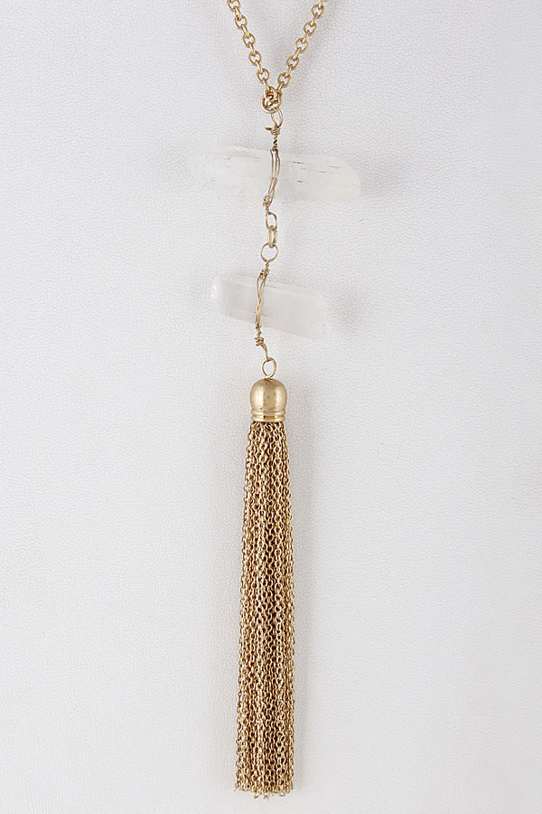 - * Chain Tassel & Bright Stone Necklace 8CCB9