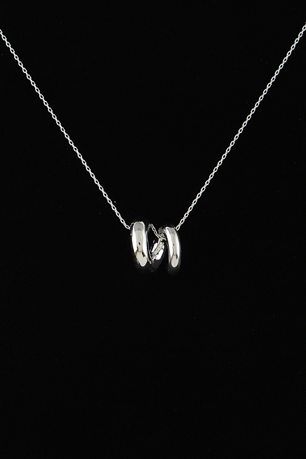 - * This Polished Spring Loop Pendant Necklace from H&D Accessories features a sleek, curved dual-loop design—crafted with a smooth, refined finish that catches light subtly. It’s suspended from a delicate, fine chain that rests neatly at the neckline.Perfect for daily styling, this piece adds a understated, modern charm to casual outfits or soft elegance to office wear, blending minimalist form with a playful, intertwined silhouette.